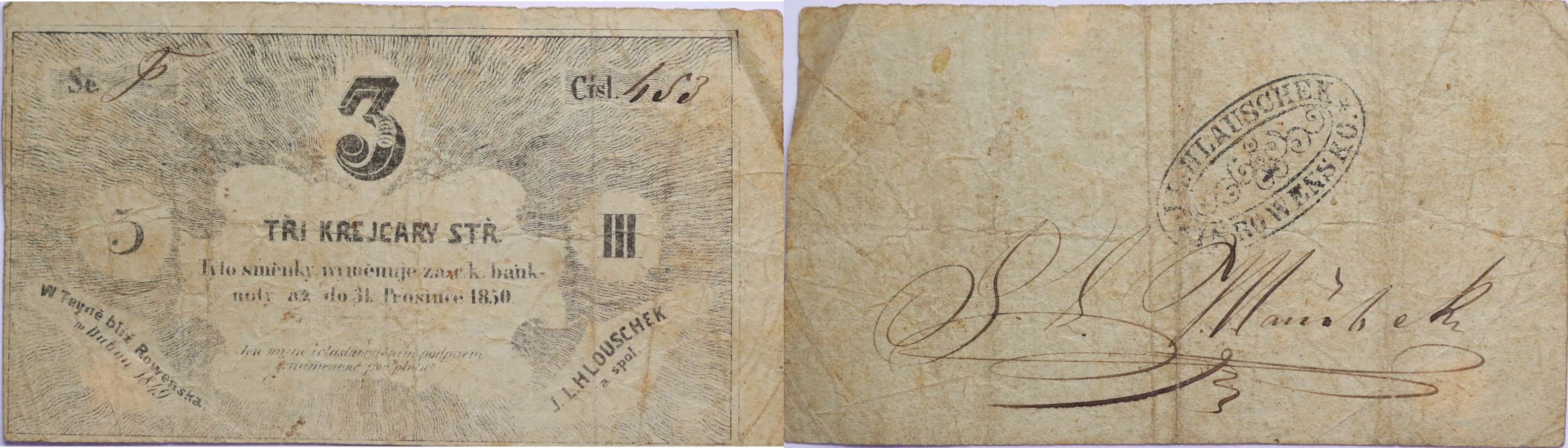 Týn (Teyn u Rowenska) - 3 Kr.stř. IV/1849 - platnost do 31.12.1850 J.L.Hlouschek a spol., sér.f, čís.453, V-R.1345.02.02.c