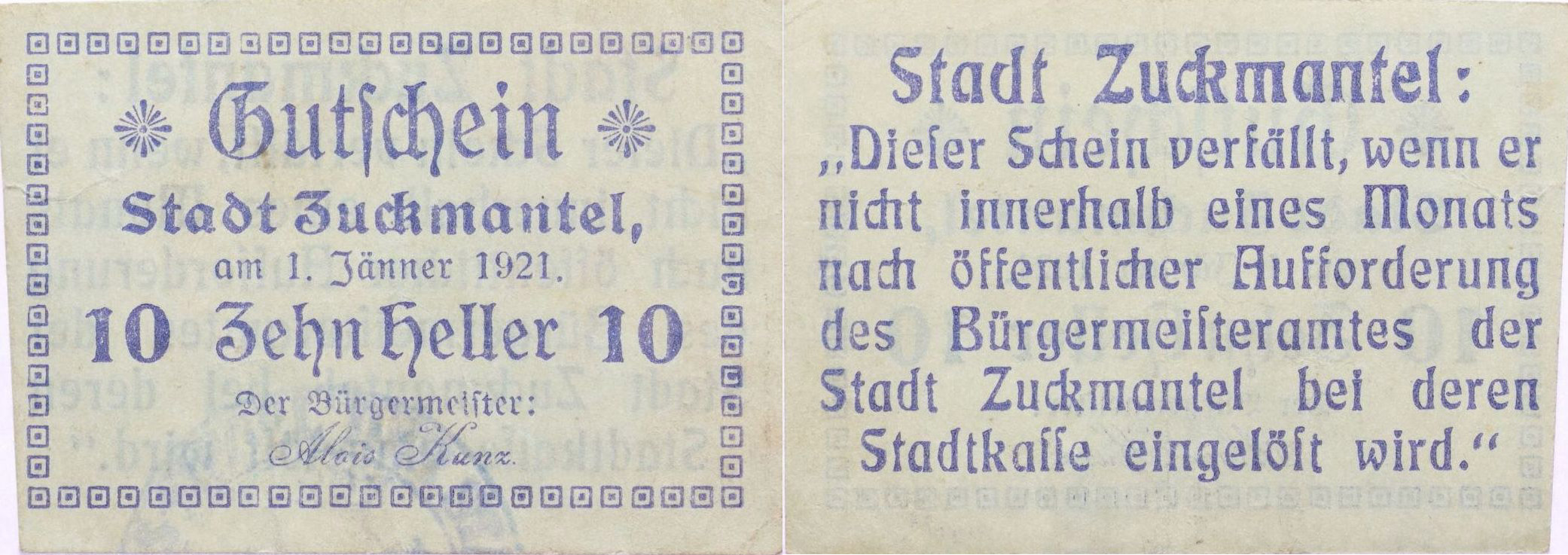 Zlaté Hory (Zuckmantel) - 10 Heller 1.1.1921, DH.240.1.1b