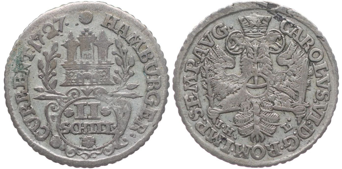 II Šilink 1727 s titulem Karla VI., Sch.22, KM.161