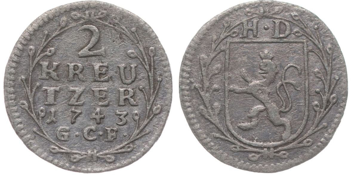 2 Krejcar 1743 G.C.F., Sch.59, KM.173