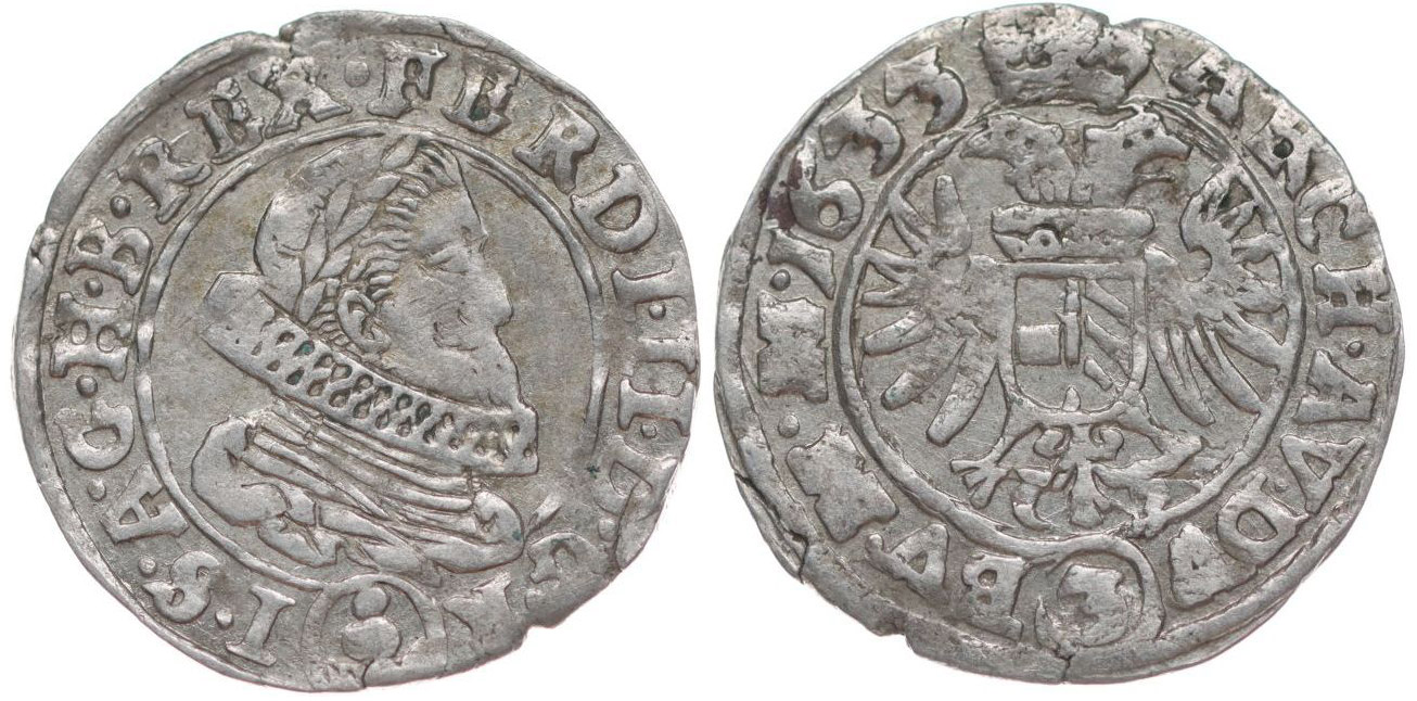 3 Krejcar 1633, Praha-Schuster, J.31a1, MKČ.761, Her.1156