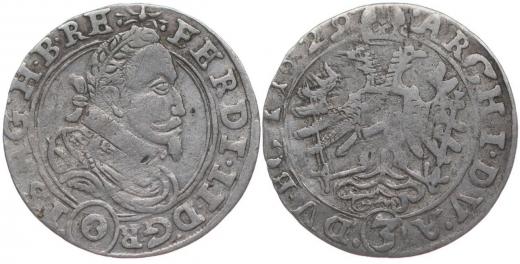 3 Krejcar 1629, Olomouc-Fritsch, MKČ.927, Ru.III/192, Her.1222a