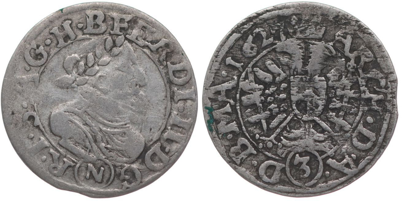 3 Krejcar 1627, Mikulov, MKČ.954, Ru.III/8, Her.1255b_č.ned.