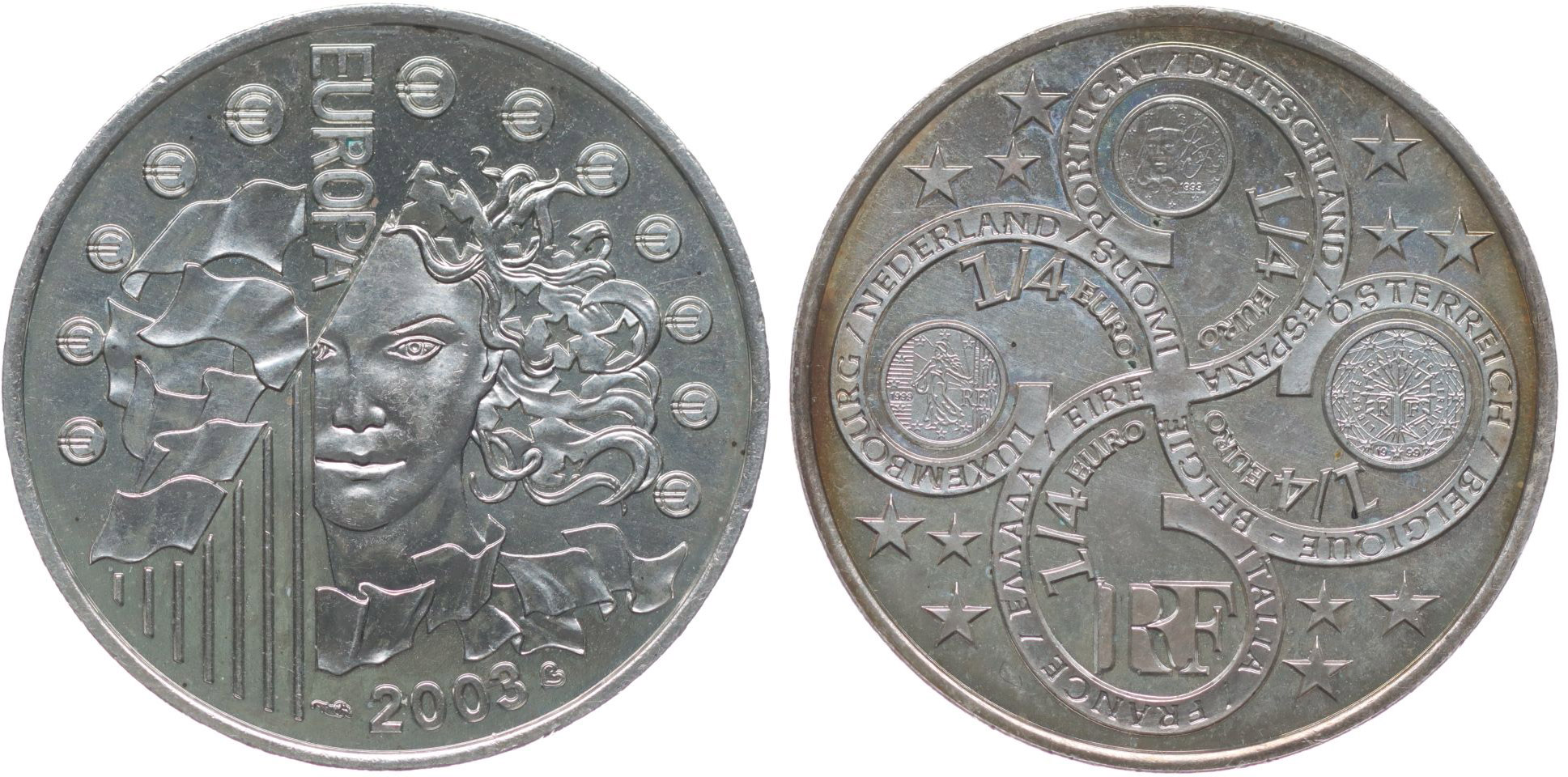Francie - 1/4 Euro 2003, 13 evropských států, Punc Ag 30 mm, 13,04 g