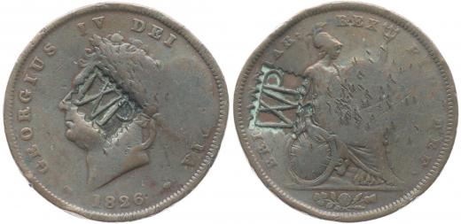 Penny 1826 (Cu), KM.693 - s kontramarkou "WP" v av. a rev. _-2/2- kontramarka