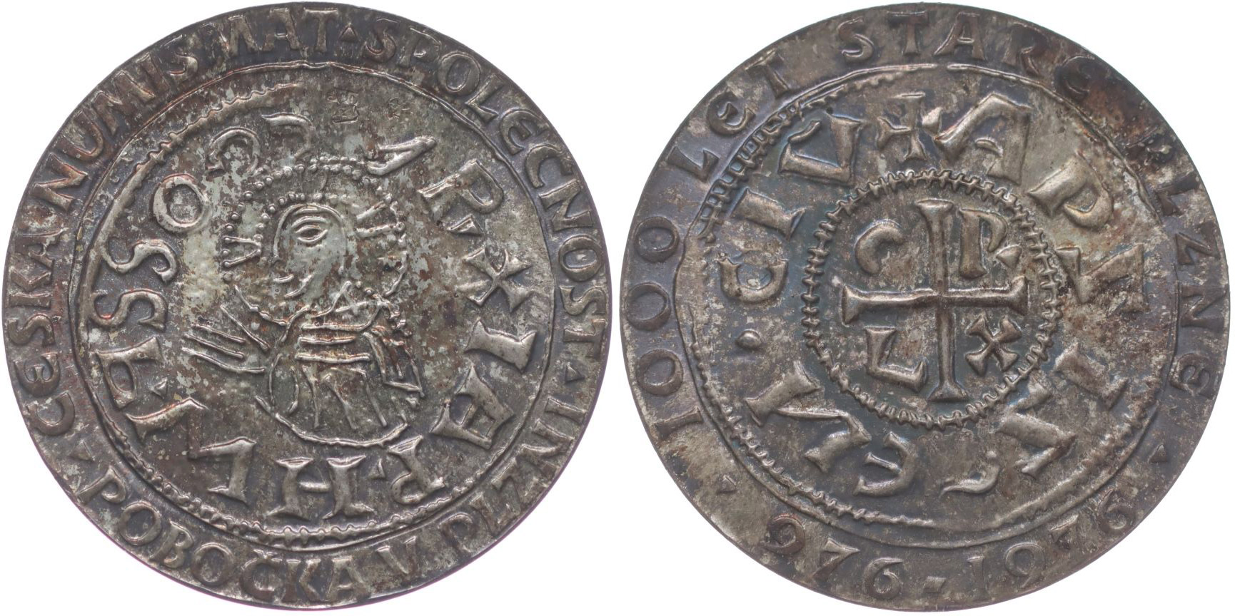 Zd.Kolářský - 1000 let Staré Plzně, 976 - 1976#Ag Líc Jaromírova denáru, opis / rub Jaromírova denáru, opis, Nesign., Punc., Ag 900, 27 mm, 5.4 g, BK.32/5, MF.A28/5