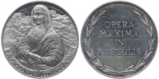 Nesign. - La Gioconda (Mona Lisa) od Leonarda da Vinci, b.l. ze série největší díla věků / 4řádk.nápis ve věnci Punc.925, Ag 30 mm, 12,93 g