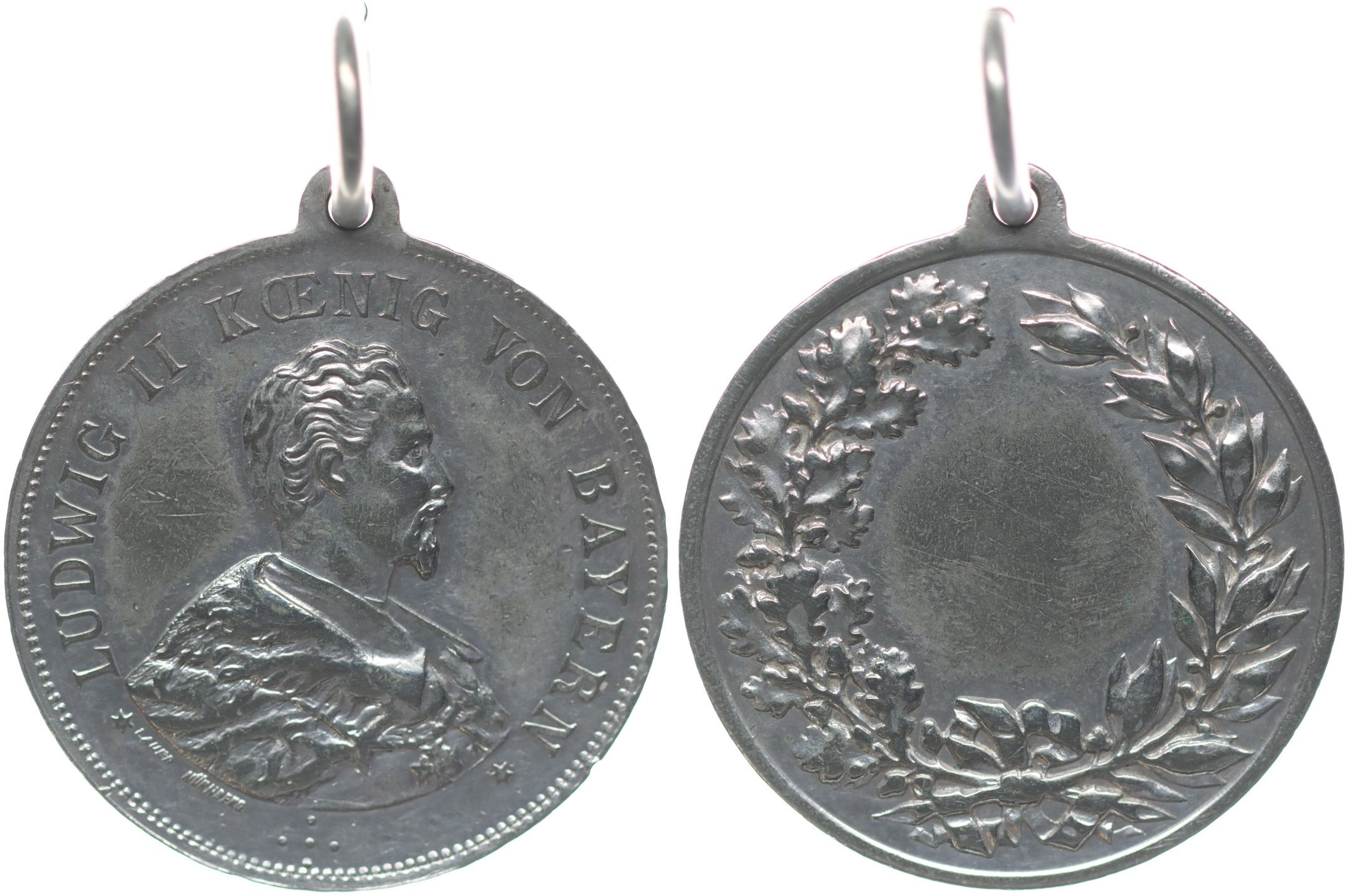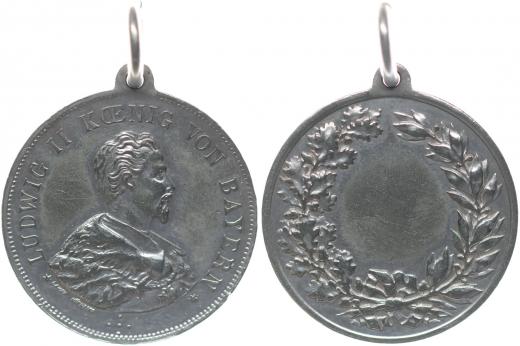 Ludwig II. - poprsí zprava, opis / věnec, b.l. Sign.Lauer Nürnberg, Bílý kov 30,5 mm_orig.raž.ouško se závěsem