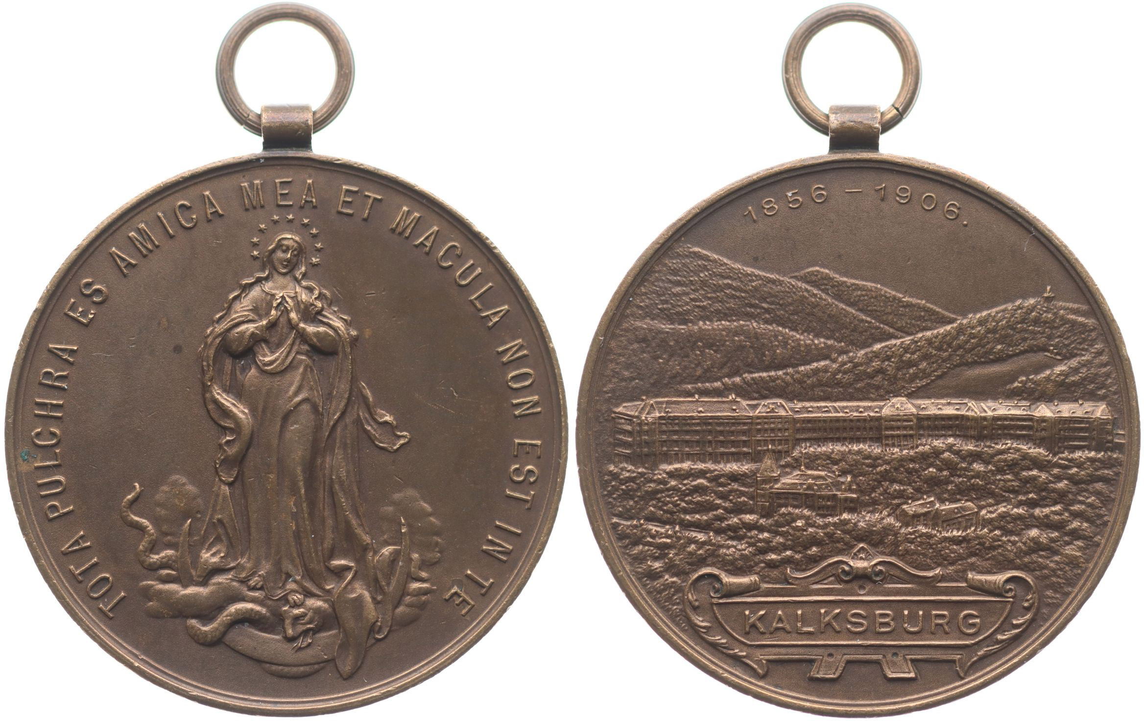 Kalksburg (u Vídně) - medaile 1856 - 1906 Pohled na město, nápis, vročení / Panna Marie na obláčku, latinský opis, Bronz 36,5 mm, 17,73 g_orig.raž.ouško se závěsem