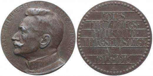 A.Hofmann - Conrad Freiherr von Hötzendorf (náčelník gen.štábu) Poprsí zleva, opis / 6řádk.nápis - úřad humanitární pomoci Sign., Fe 45 mm
