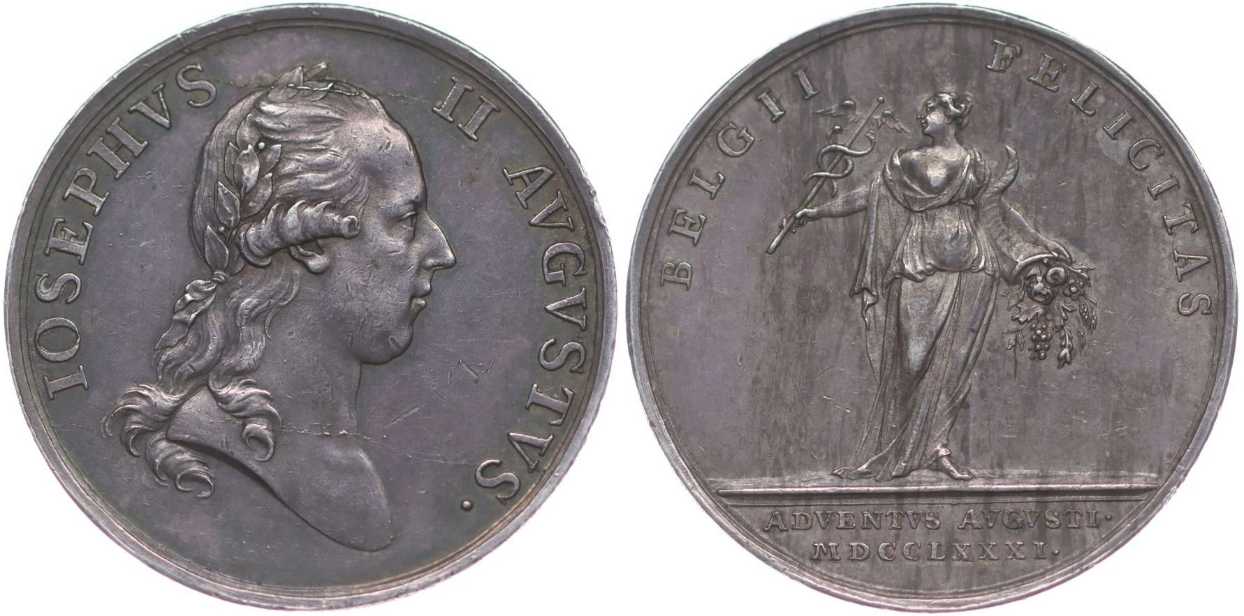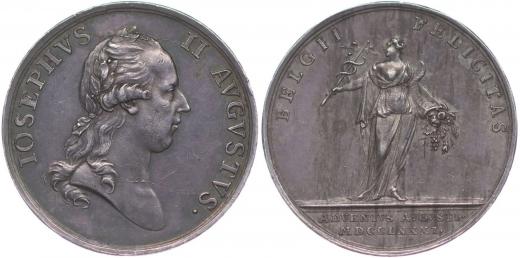 Nesign. - medaile na cestu do Belgie 1781 Hlava zprava, opis / bohyně s rohem hojnosti, 2řádk.nápis, opis Nesign.(v.Berckel), Ag 27,5 mm, 6.40 g, Mo.2137_R!