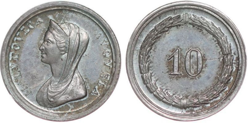 AR žeton b.l., poprsí zleva, opis / "10" ve věnci, Ag 12 mm, 1,25 g _RR!