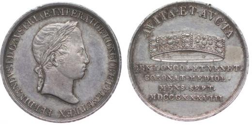 Menší peníz na korunovaci v Miláně, září 1838 Portrét, opis / lombardská koruna, nápis, Nesign., Nepunc., Ag 19 mm, 3.29 g, P.6/19, M.2586, H.3641, Nov.XVIII/G-9b