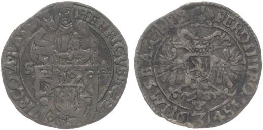 Groš 1645 s titulem Ferdinanda II., mincovna Planá, mincmistr Kašpar Begner, Smet.CB23a, Do.3820_RR!
