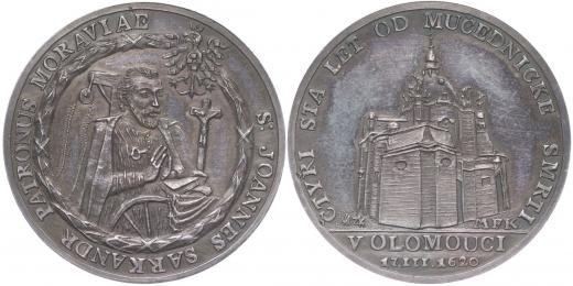 Jan Sarkandr - medaile k výročí 400 let od mučednické smrti 17.III.1620, polopostava světce s křížem, latinský opis / kaple, 2řádk.nápis, český opis, vyd.2022, Sign.JJ (J.Jelínek, ZK (Z.Kaleta) MFK (M.F.Kamenický), Nepunc.Ag 35,5 mm, 23,20 g, náklad 15 ks_RR!