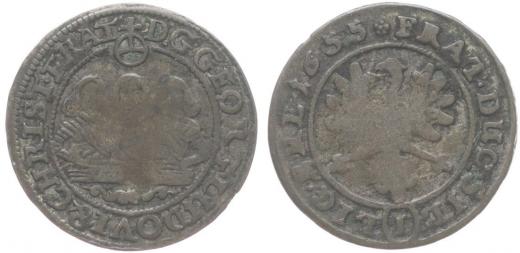 1 Krejcar 1655 b.zn., SJ.308/120pod., Kop.5307, opis končí:... CHRIST.FRAT._R!