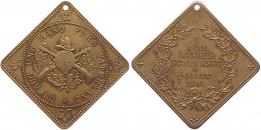 Jihlava (Iglau) - V. moravské zemské střelby 1894#Cu Zkřížené pušky pod terčem, opis ve věnci / 7řádk.nápis ve věnci nápis na stuze, Nesign., Cu klipa 32,5x32,5 mm, 17,72 g_orig.dírka