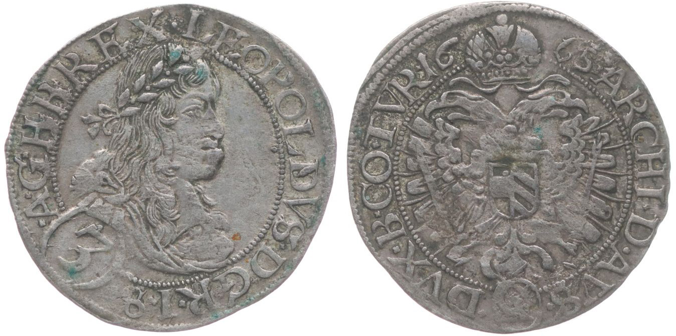 3 Krejcar 1665, Vídeň-Cetto, Nech.1963, Her.1312, typ se stuhami