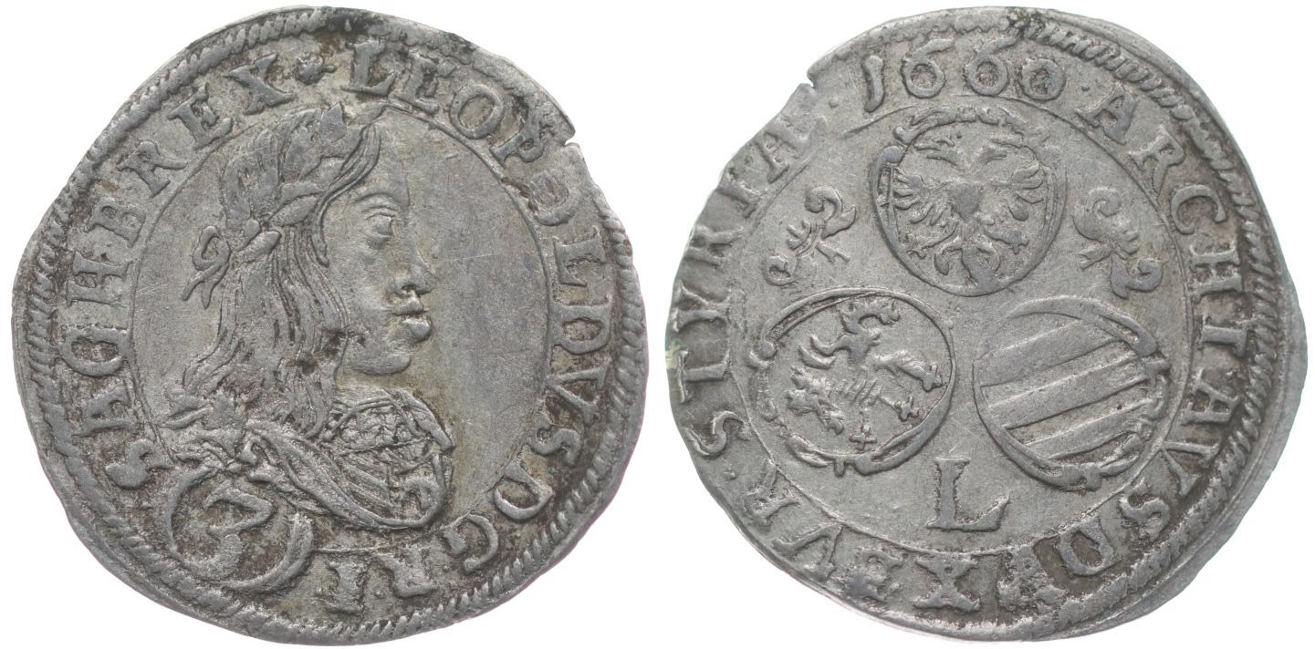 3 Krejcar 1660, s "L" pod znaky, Št.Hradec, Nech.2200, Her.1330 _dr.kraj.stř. R!