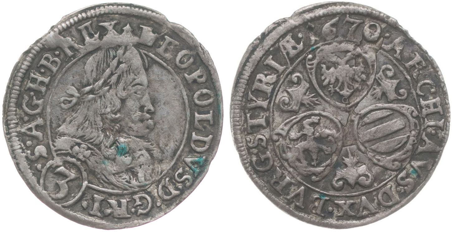 3 Krejcar 1670 IGW, Št.Hradec, Nech.2214, Her.1343_R!