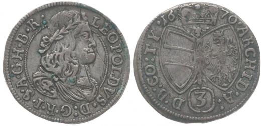 3 Krejcar 1670, Hall, Nech.2432, Her.1414