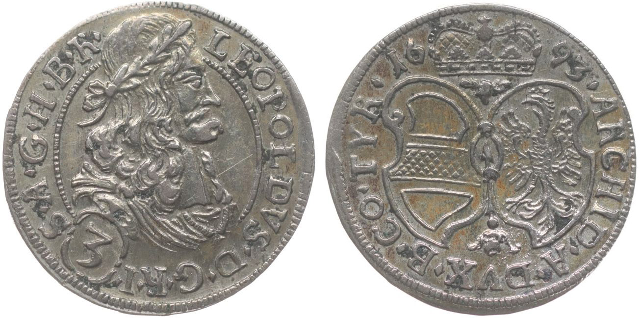 3 Krejcar 1693, Hall, Nech.2457, Her.1439