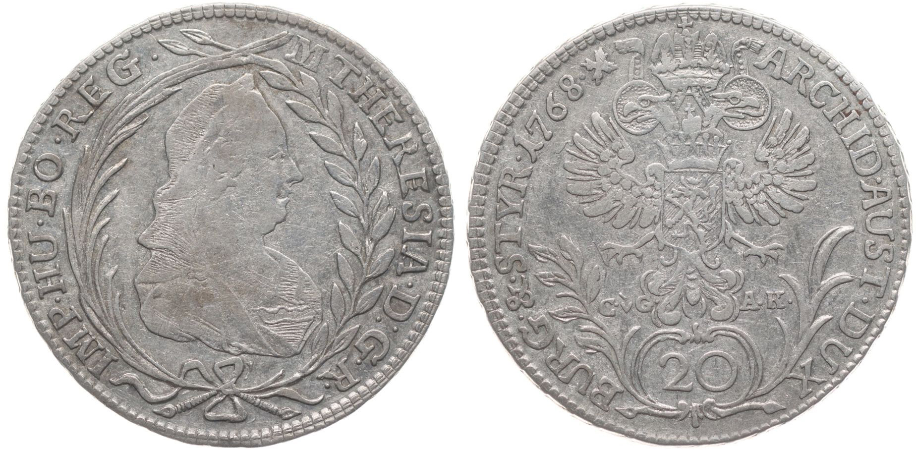 20 Krejcar 1768 CvG-AK, Štýrský Hradec, Nový.55
