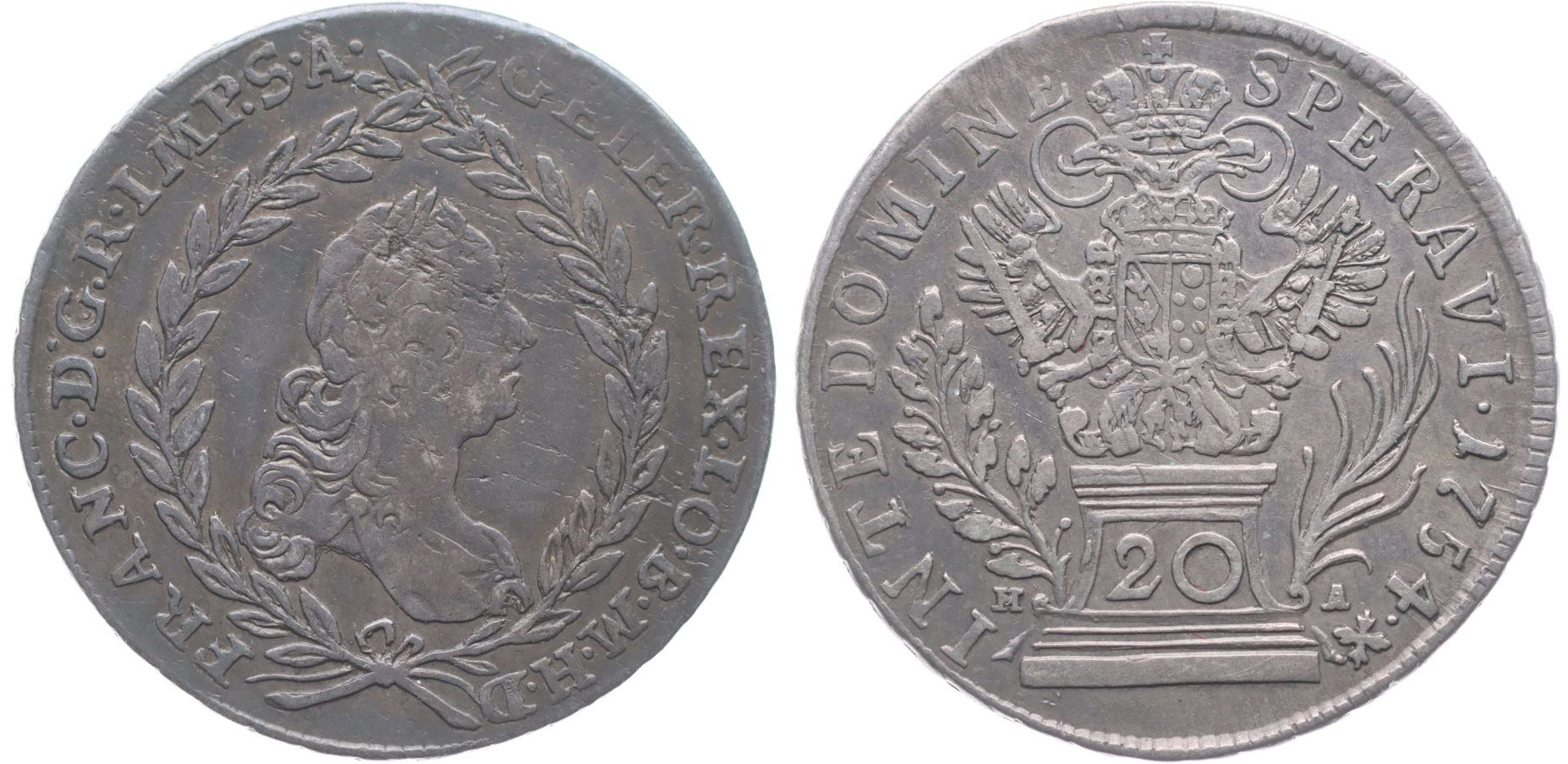20 Krejcar 1754 H-A, Tyroly-Hall, Nový.8