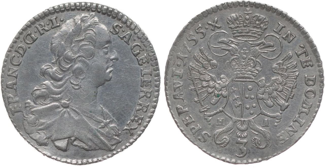 3 Krejcar 1755 H-A, Tyroly-Hall, Nový.14, Her.557_R!