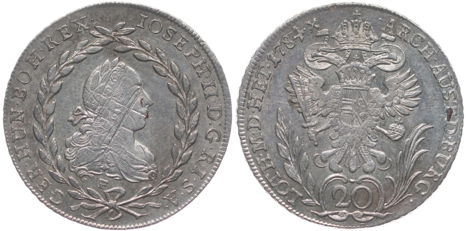 20 Krejcar 1784 F, P.31, Her.256_dr.just. v av.