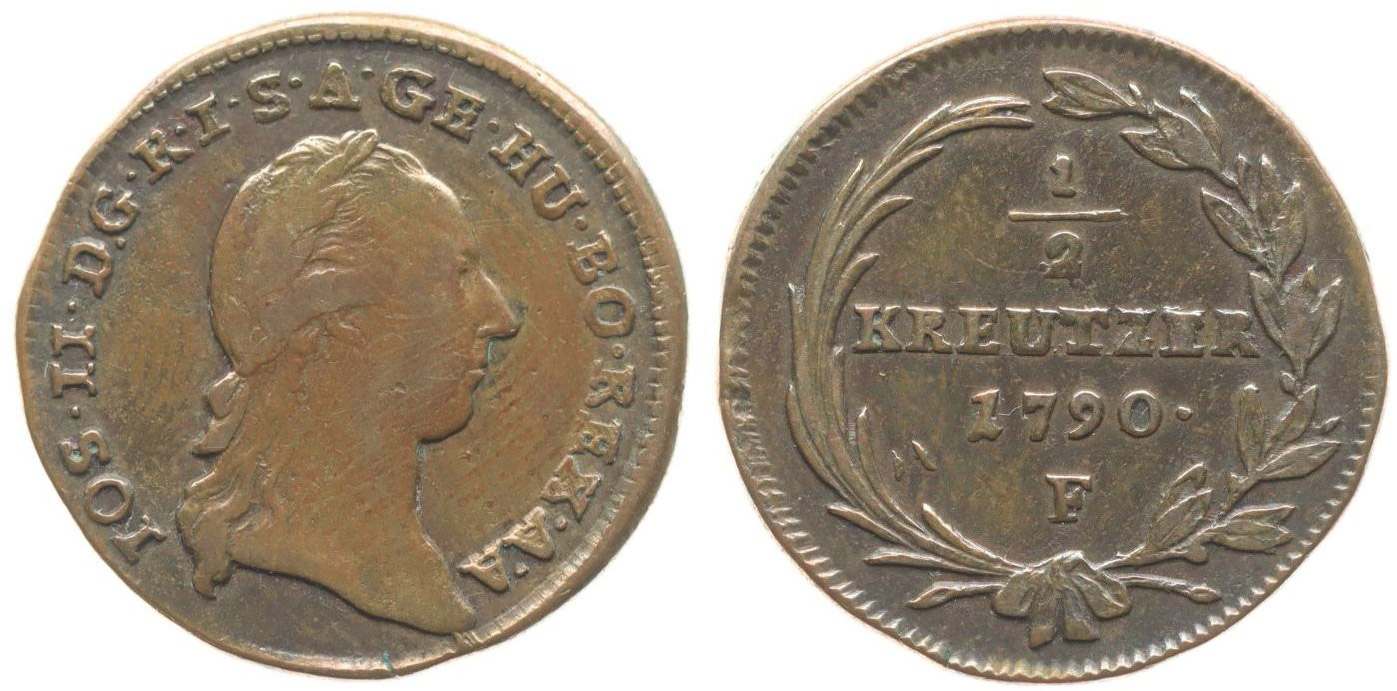Cu 1/2 Krejcar 1790 F, AM.2, Her.428_R!