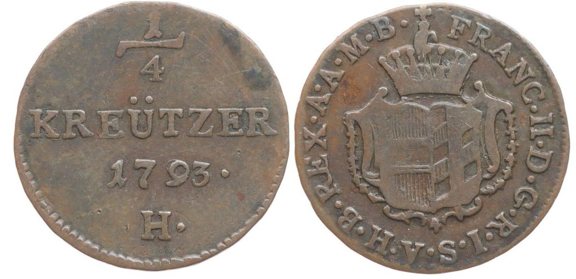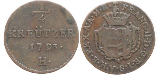 Cu 1/4 Krejcar 1793 H, Günzburg pro Přední Rakousko_R!
