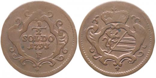 Cu 1/2 Soldo 1793 F, Hall pro Gorici a Gradišku_R!