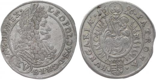 XV Krejcar 1696 C-H, Bratislava-Hunger, Nech.1648, Höll.96.1.3 Her.1103_dr.kraj.stř. R!