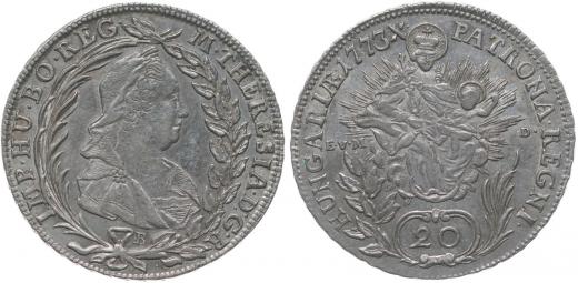 20 Krejcar 1773 B / EvM-D, Nový.94, Her.979