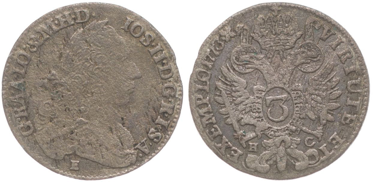 3 Krejcar 1777 E/H-G, Karlovský Bělehrad, Her.298_RR!