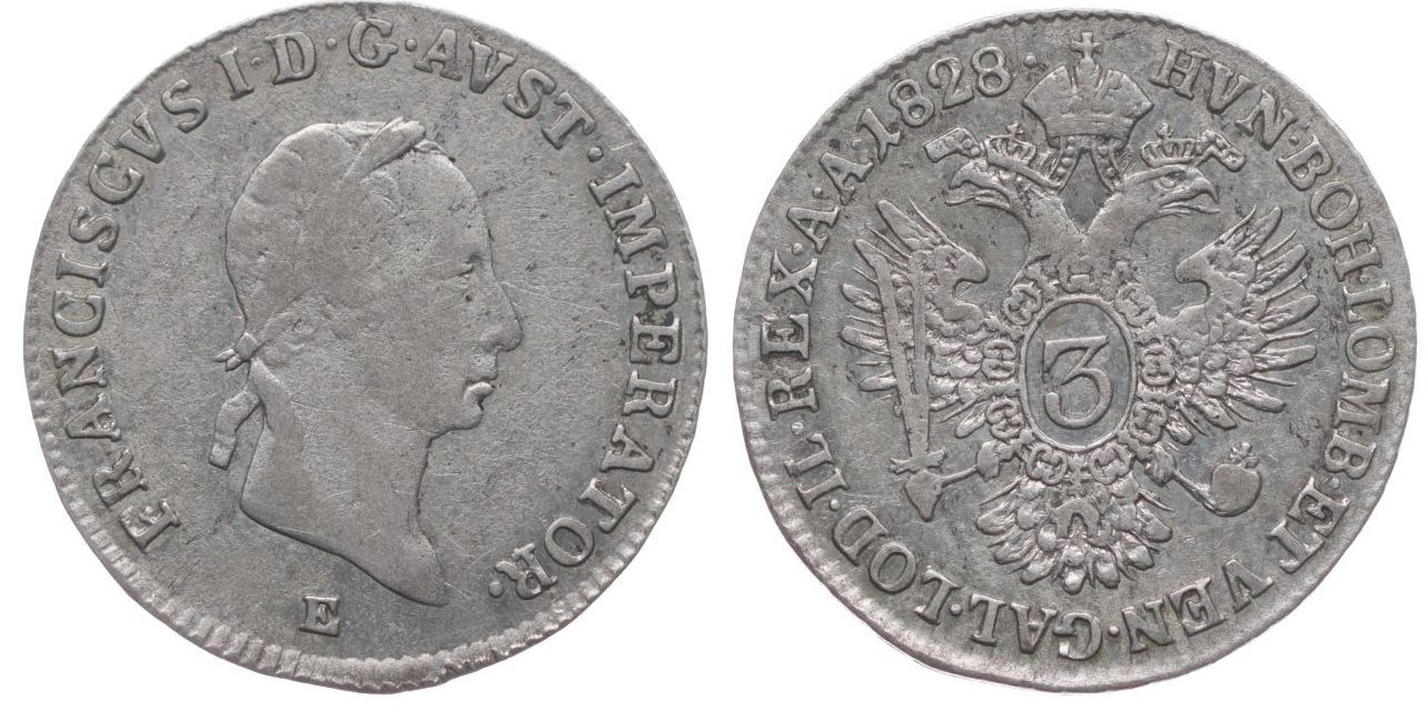 3 Krejcar 1828 E, Her.1002_R!