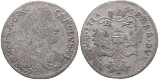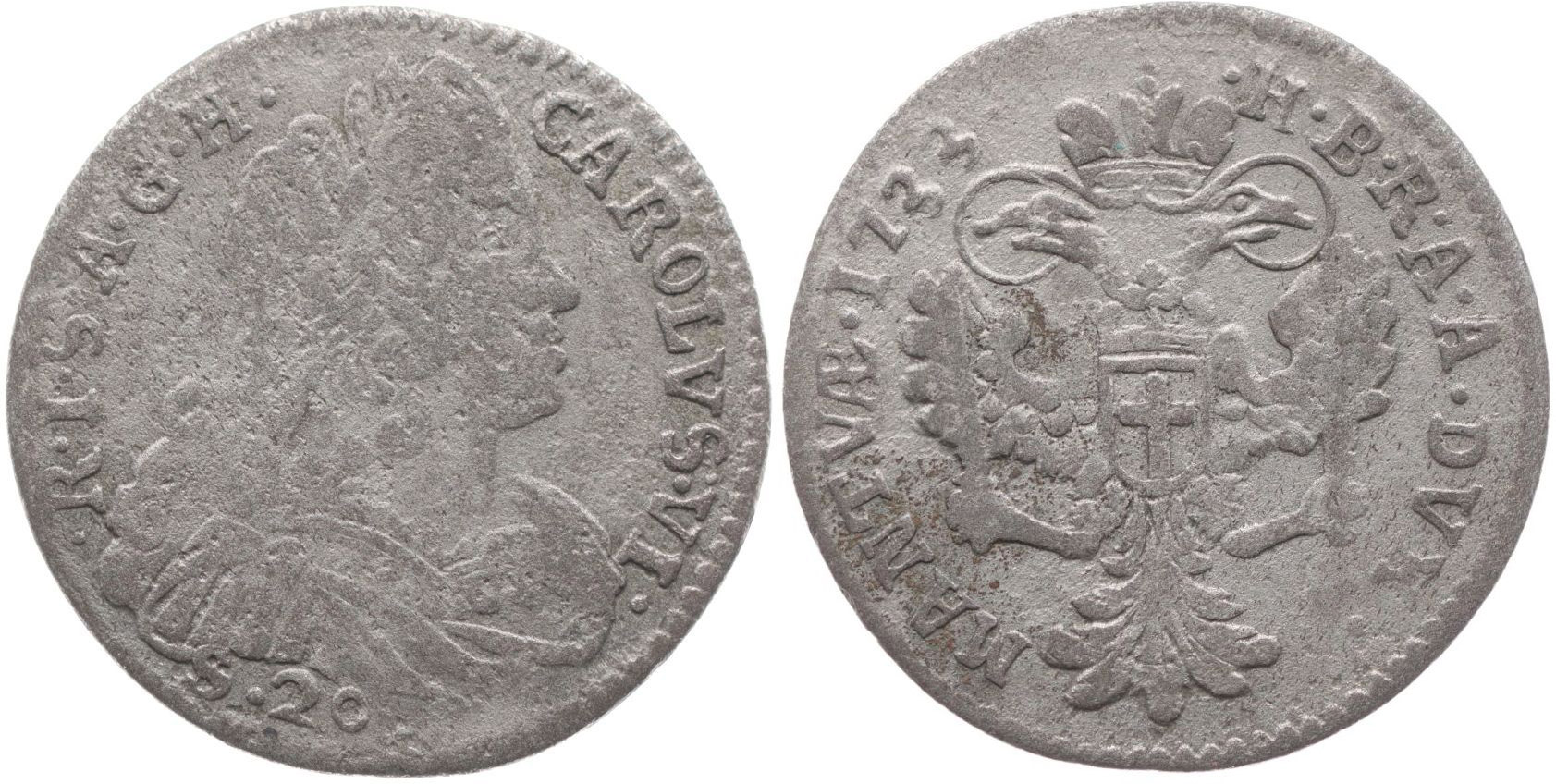 20 Soldi 1733 pro Mantovu, M-A.230 (tab.35/48), Her.1124, Sch.7_R!