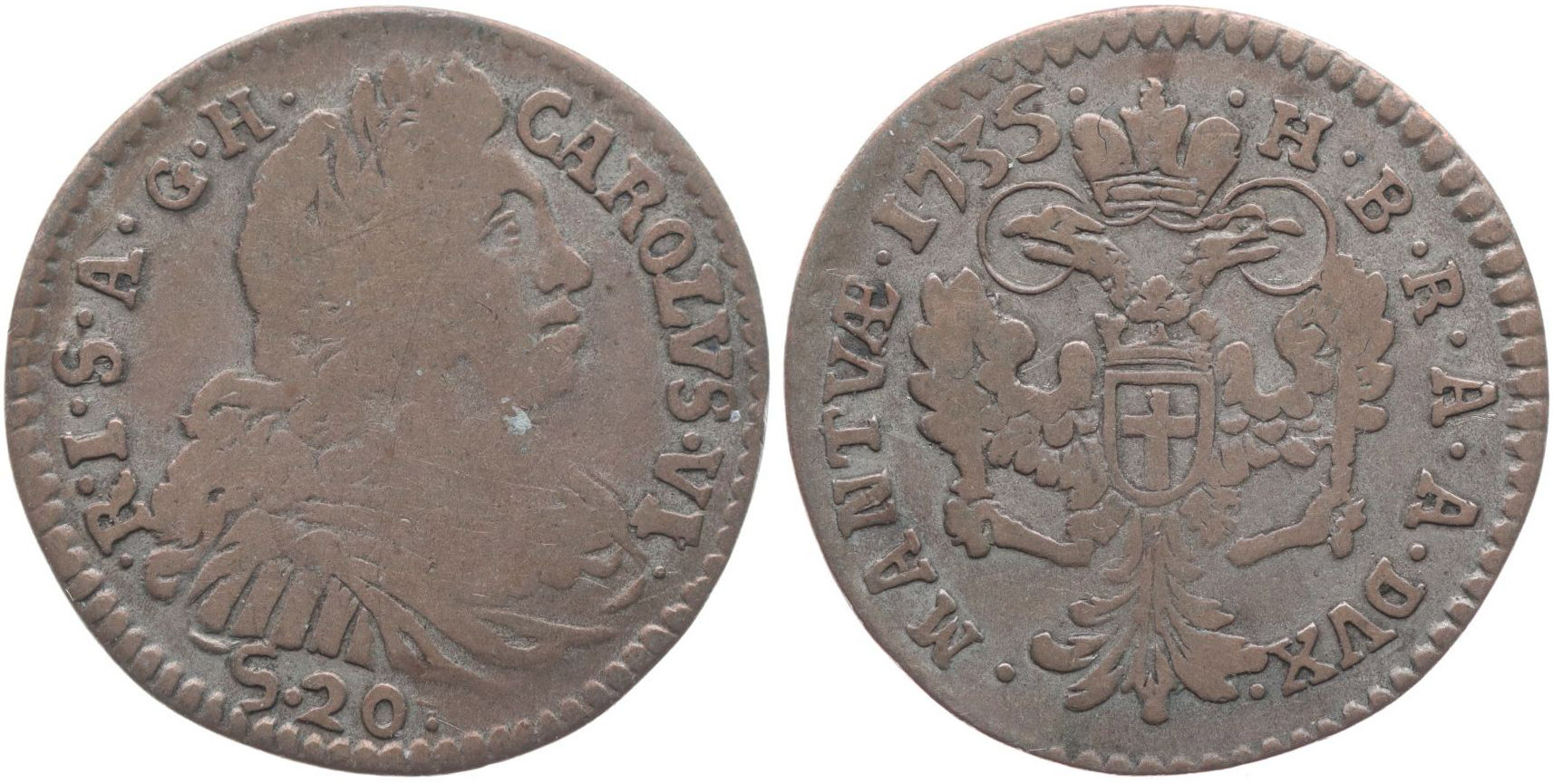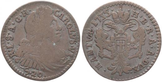20 Soldi 1735 pro Mantovu, M-A.232 (tab.35/48), Her.1126, Sch.7_R!