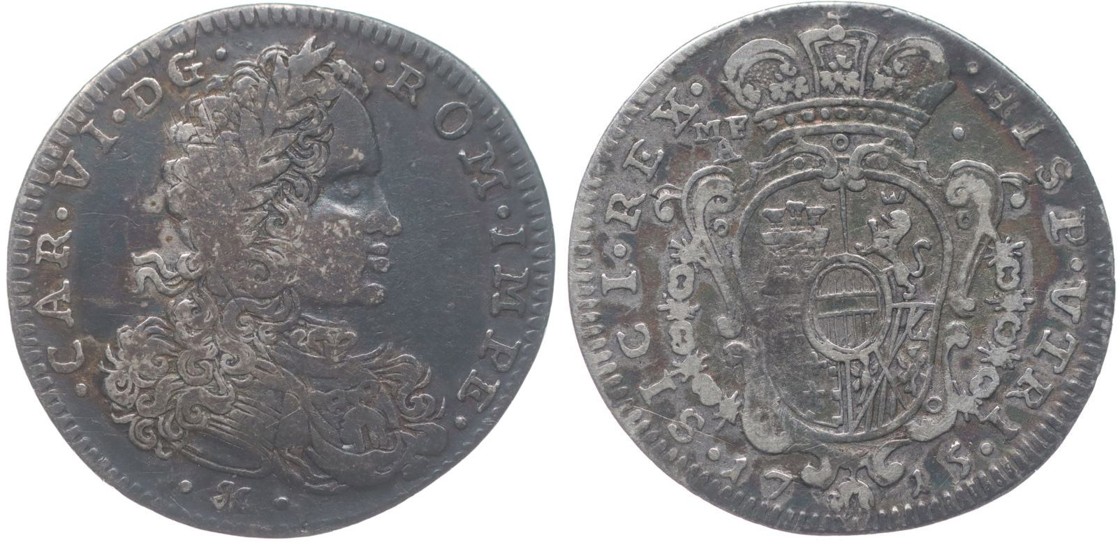 Tari (2 Carlini) 1715, poprsí zprava, opis / korunovaný znak, opis Ag 25 mm, 4,36 g, Novotný.63 (T.C.), Wi.9766, Sch.6_RR!
