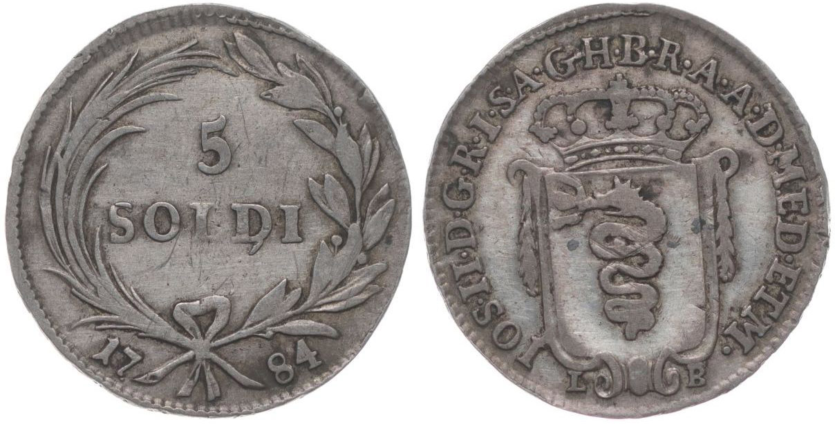 5 Soldi 1784 LB, Milán, P.41, Her.385