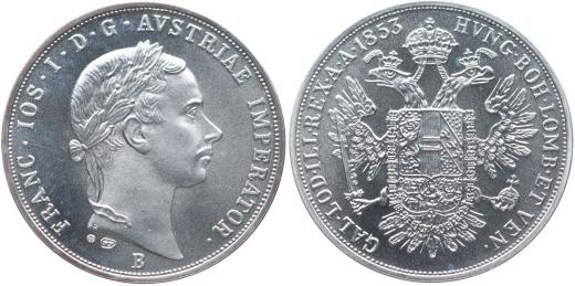 1/2 Tolar 1853 B - oficiální novoražba Ag 900/1000, 30 mm, 13,2 g vydala minc.Kremnica, nákl.200 ks_orig.kapsle + dřev.etue + certifikát