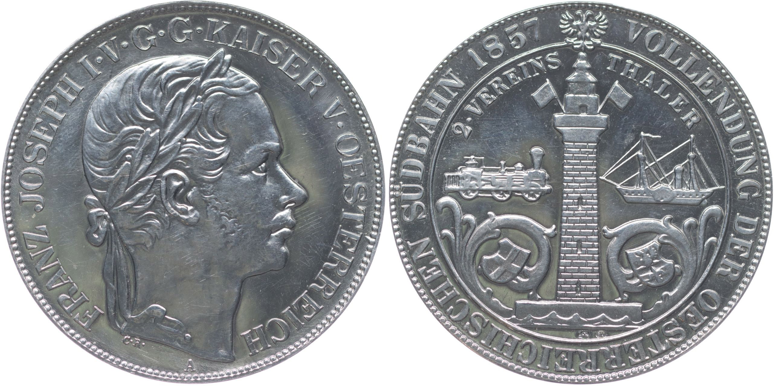 2 Tolar spolkový 1857 A - Jižní dráha, znač.CR (K.Radnitzky) replika - značeno BIJ, Punc. 2x, Ag 41 mm, Punc.999, 33,34 g