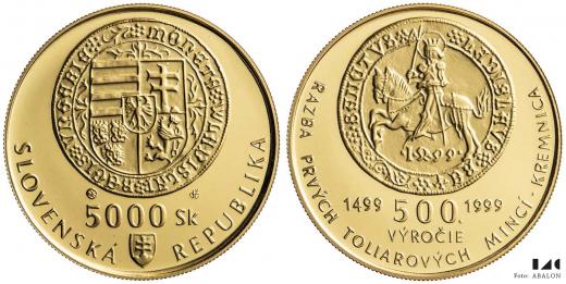 5000 Sk 1999, ražba tolarů v Kremnici, etue, karta