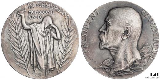 Úmrtní medaile TGM 1937, Ag 60 mm, 79,78 g, Floss 54b