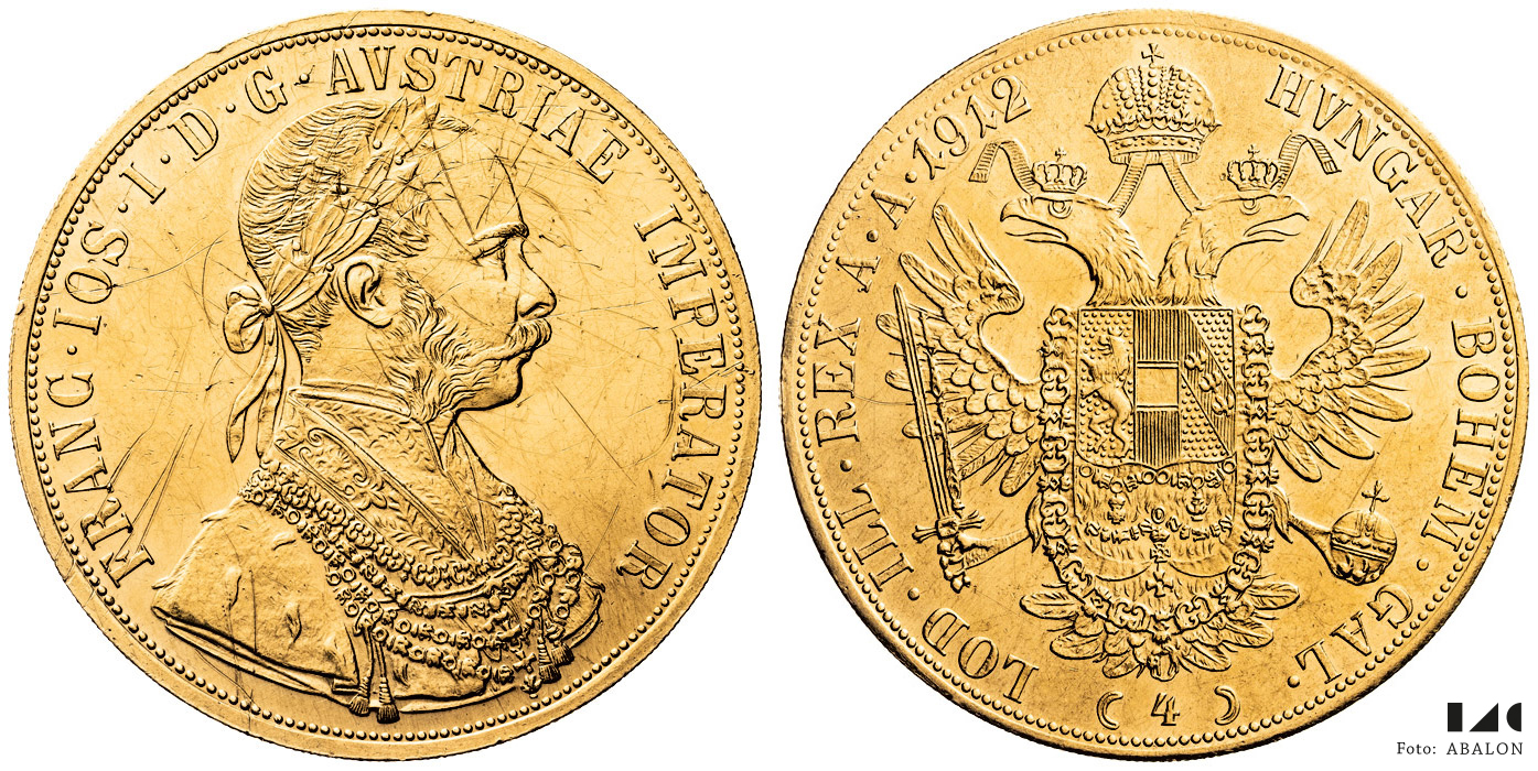 4 dukát 1912, četné škrábance u hlavy, 13,92 g