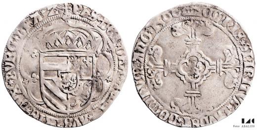 2 stuiers (double patard - 2 groš), minc. Antverpy, Ag 28 mm, 2,90 g, korunovaný znak, lvíček, květinový kříž