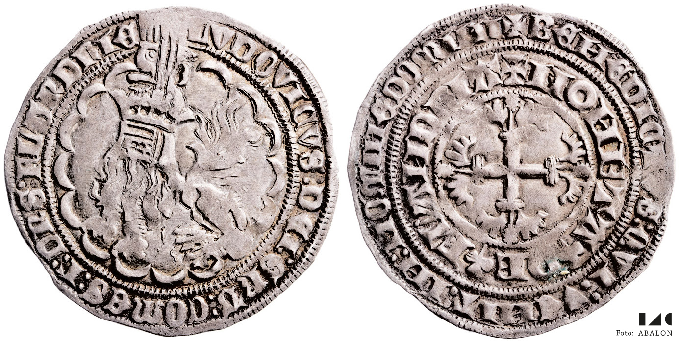 Dvojitý groš b.l., lev s přilbou, kříž, dvojitý opis, minc. Gent nebo Mechelen, De Wit. I. 1321, 4,14 g