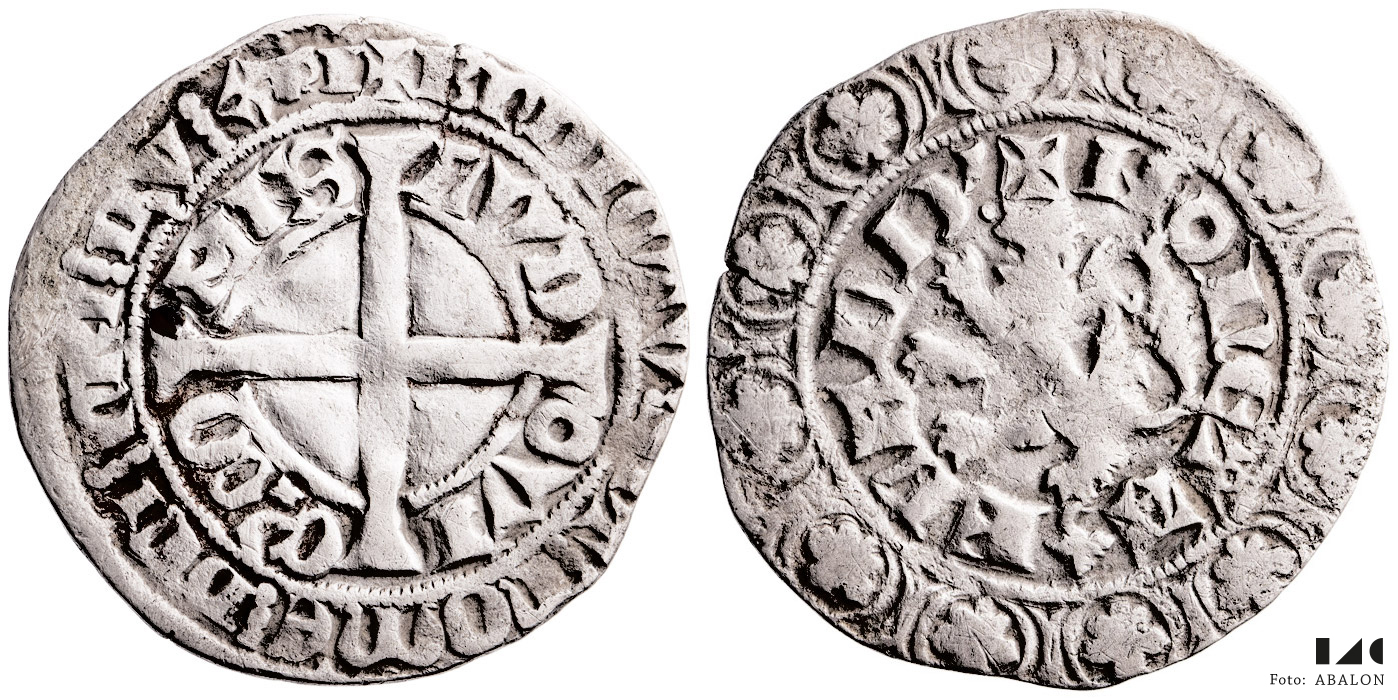 Groš b.l. dvojitý opis, lev s opisem, po obvodu lístky, minc. Brugy, 3,12 g