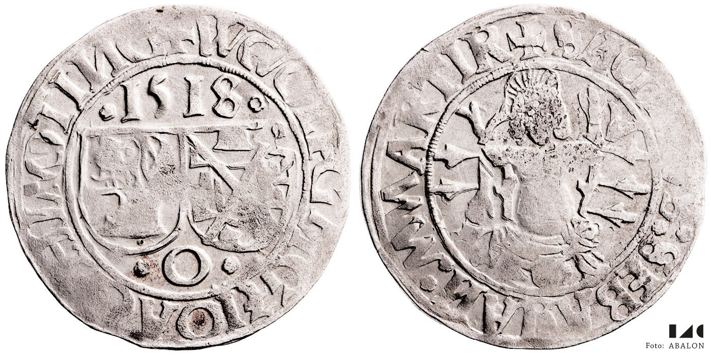 Batzen 1518, Ag 26 mm, 3,84 g, dva znaky a sv. Sebastian se šípy